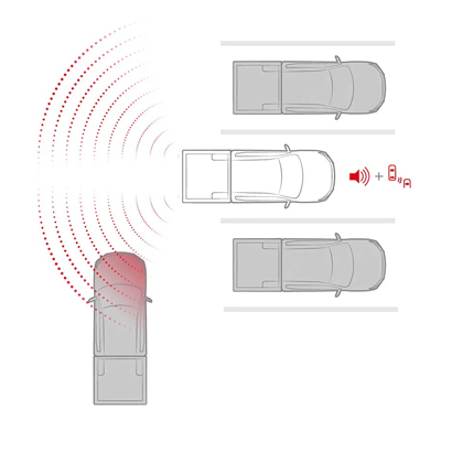 Rear Cross Traffic Alert (RCTA) alerts the driver via visual and audible warnings if an approaching vehicle is detected when reversing. (Athlete only)